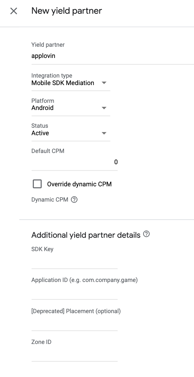 請按照「歐洲法規設定」和「美國州級法規設定」中的步驟,在 Ad Manager 使用者介面,將 AppLovin Corp. 新增至符合歐洲和美國州級法規的廣告合作夥伴名單。