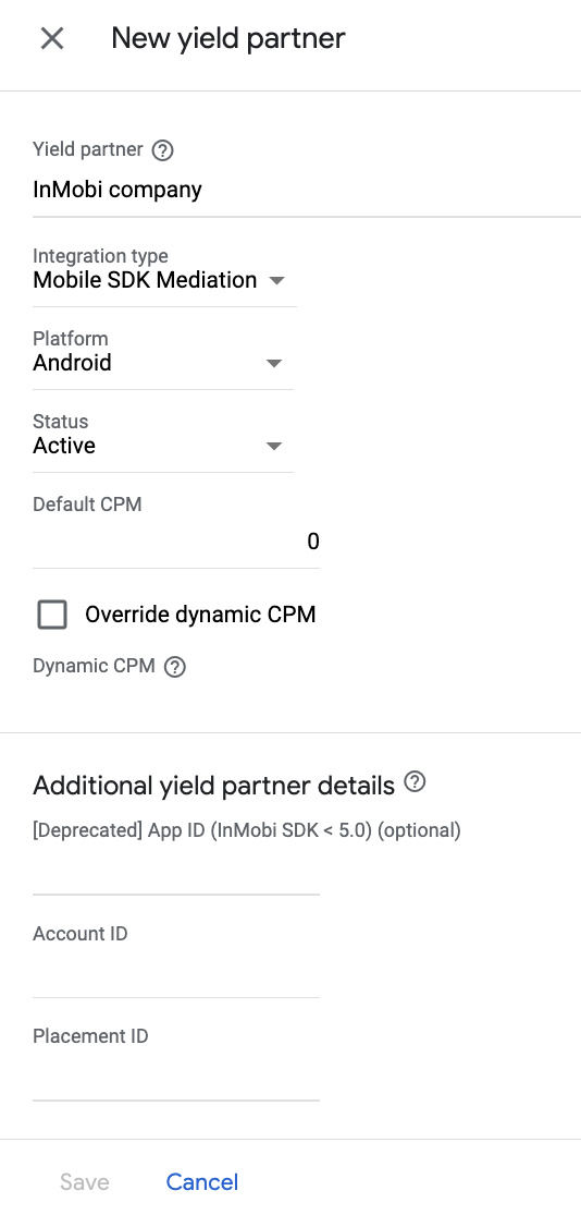 ขั้นตอนที่ 2: ตั้งค่าดีมานด์ InMobi ใน UI ของ Ad Manager