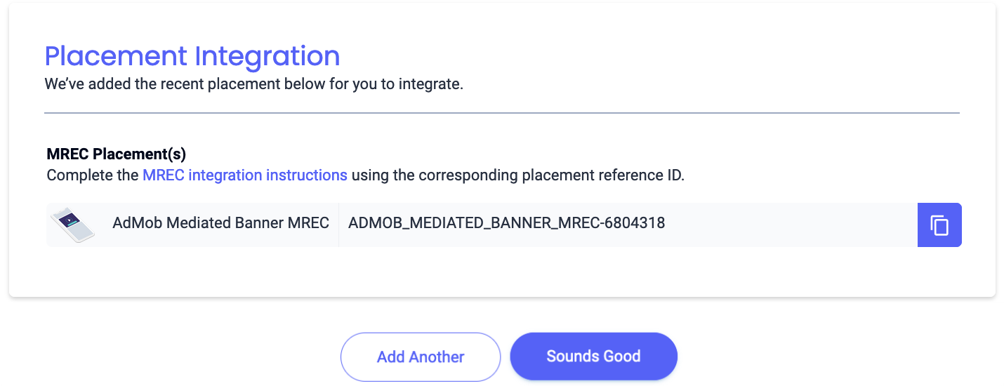 Seleziona MREC, inserisci un Nome posizionamento e compila il resto del modulo. [Solo offerte] In Monetizzazione, imposta l'opzione Offerte in-app su Attivata. Fai clic sul pulsante Continua nella parte inferiore della pagina per creare il posizionamento.