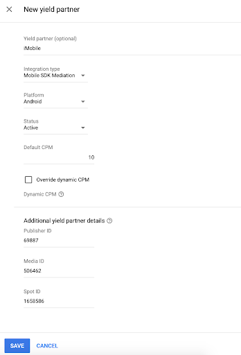Ad Manager için test cihazınızı kaydettiğinizden emin olun. i-mobile, test için Spot ID, Media ID ve Publisher ID sağlar. Bunları burada bulabilirsiniz.