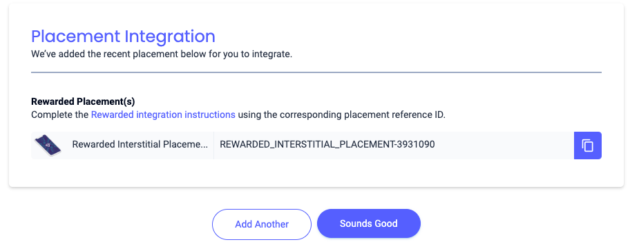 選取「獎勵」。輸入刊登位置名稱,啟用「可略過」,並填寫表單的其餘部分。[僅限出價] 在「營利」下方,將「應用程式內出價」切換鈕設為「已啟用」。按一下頁面底部的「繼續」按鈕,即可建立刊登位置。