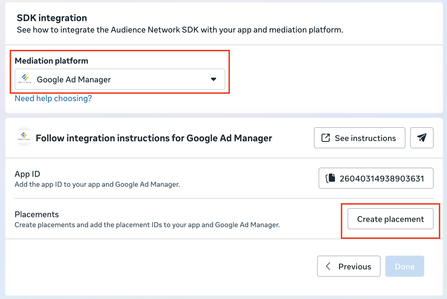 ขั้นตอนที่ 1: ตั้งค่าการกำหนดค่าใน UI ของ Meta Audience Network