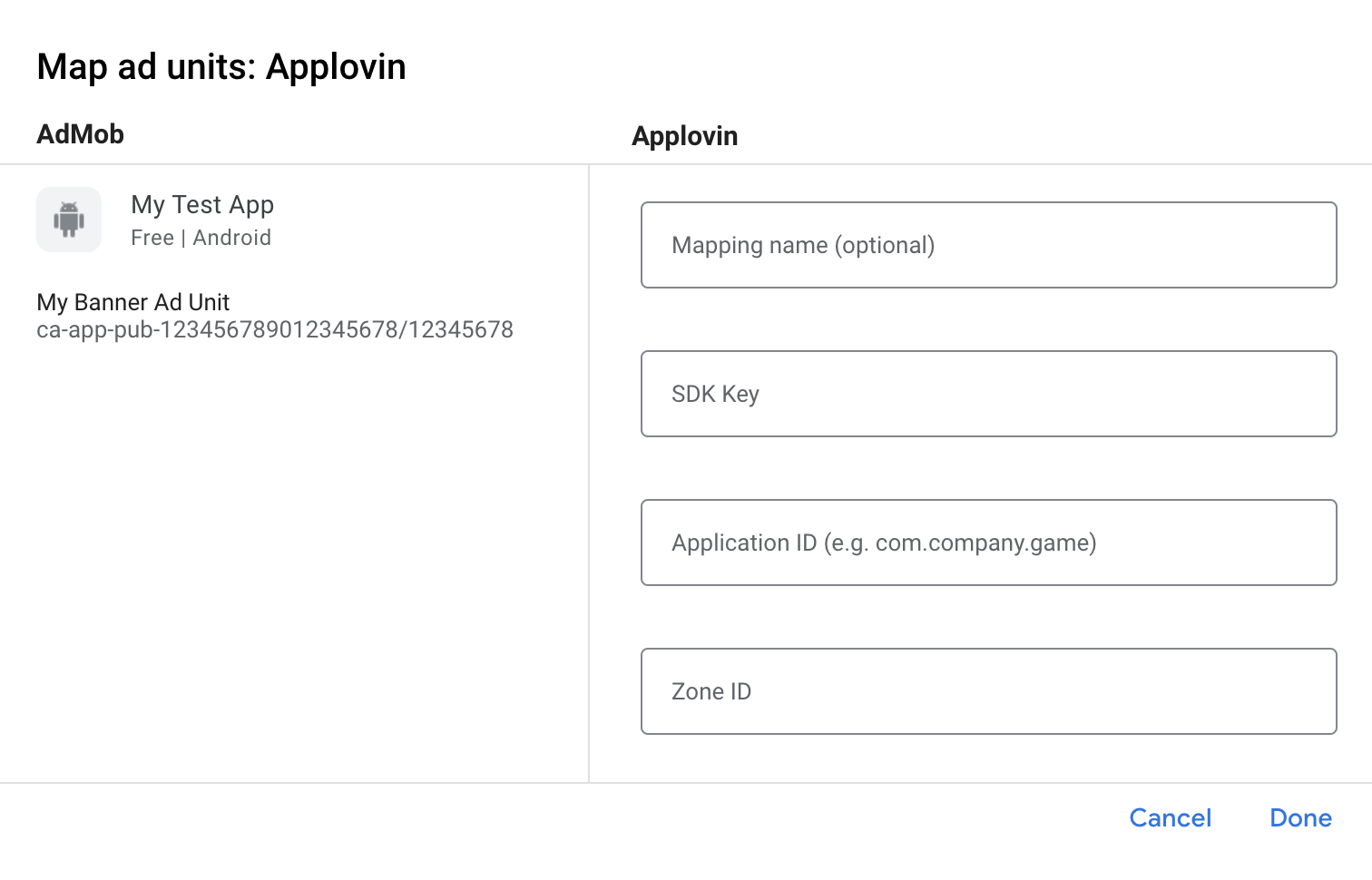 Bước 2: Thiết lập nhu cầu của AppLovin trong giao diện người dùng AdMob