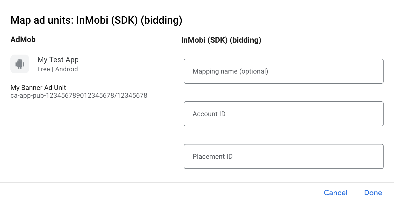 ขั้นตอนที่ 2: ตั้งค่าดีมานด์ InMobi ใน UI ของ AdMob