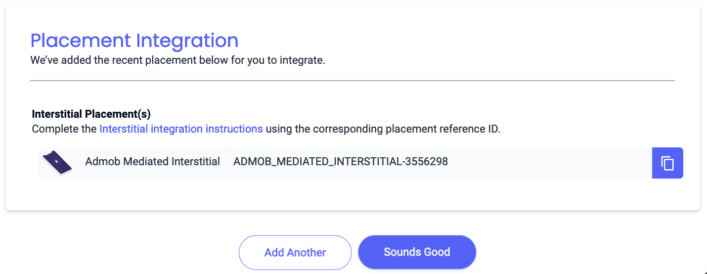 如需创建新的展示位置以用于 AdMob 中介,请前往 Liftoff Monetize Placements 信息中心,点击 Add Placement 按钮,然后从下拉列表中选择您的应用。