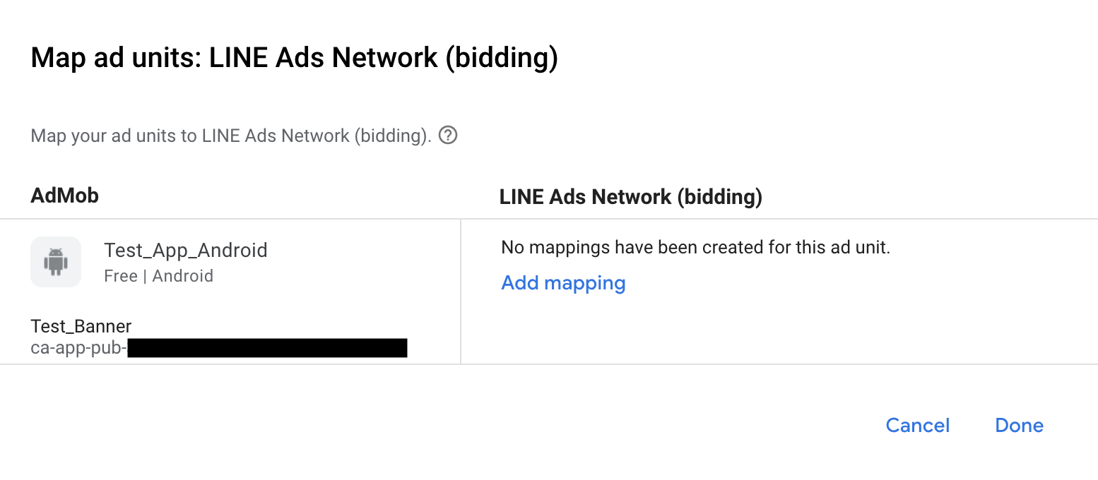 Se você já tiver um mapeamento para a LINE Ads Network, selecione-o. Caso contrário, clique em Adicionar mapeamento.