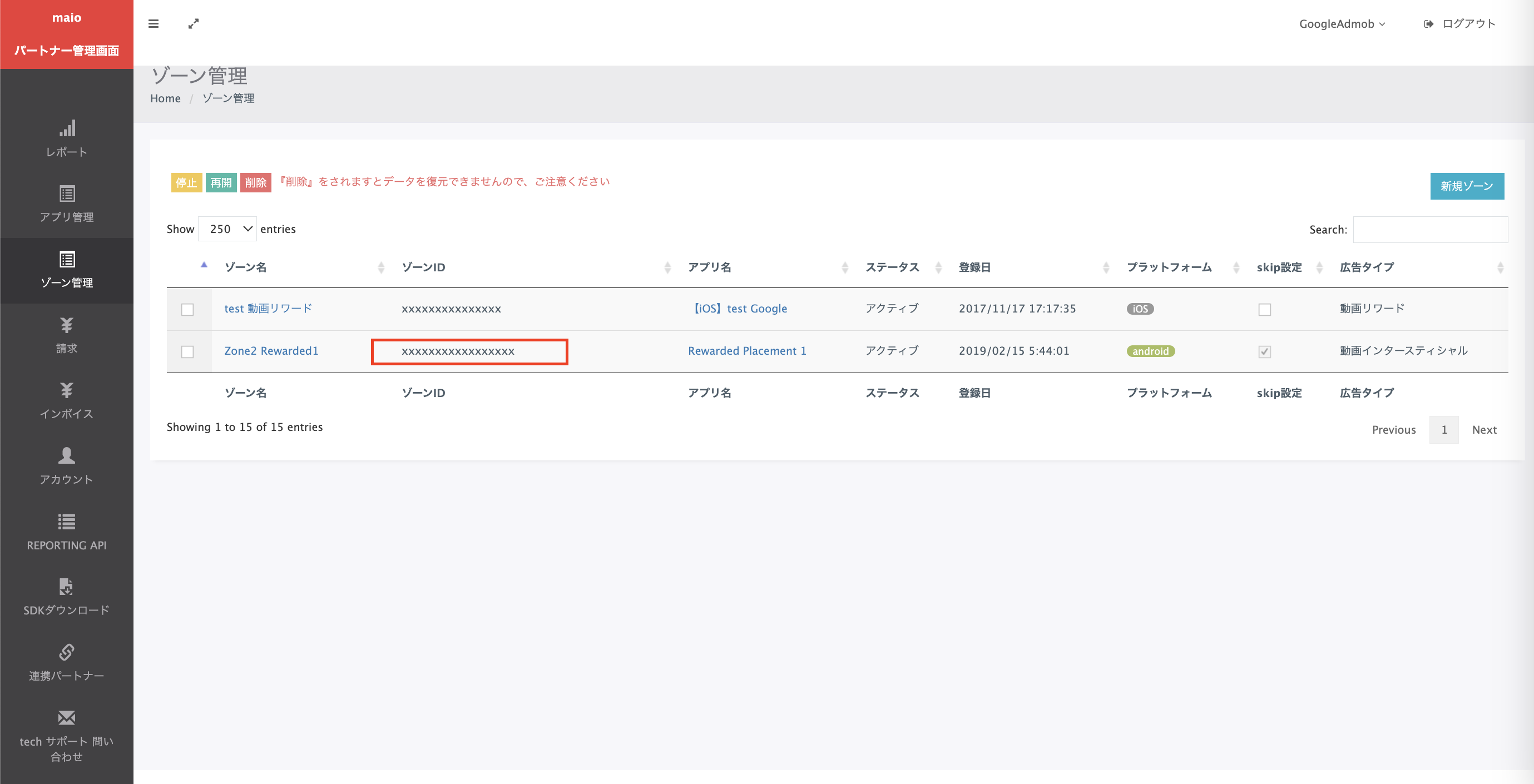 Zone Management (Bölge Yönetimi) sayfasında Zone ID'yi (Bölge Kimliği) not edin. Ayrıca, bir sonraki bölümde AdMob reklam biriminizi ayarlamak için de gereklidir.