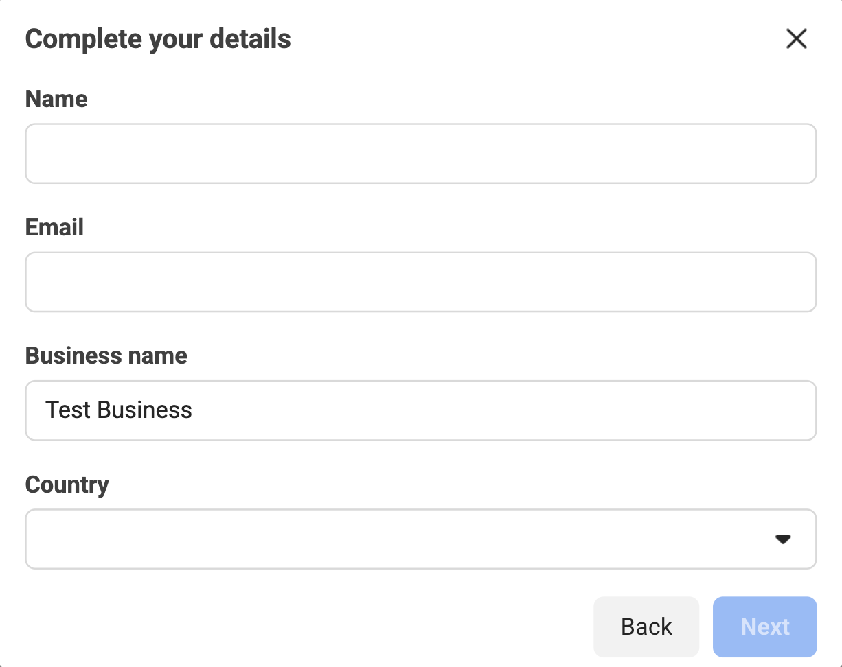 填寫必填欄位,提供商家詳細資料,然後按一下「下一步」。