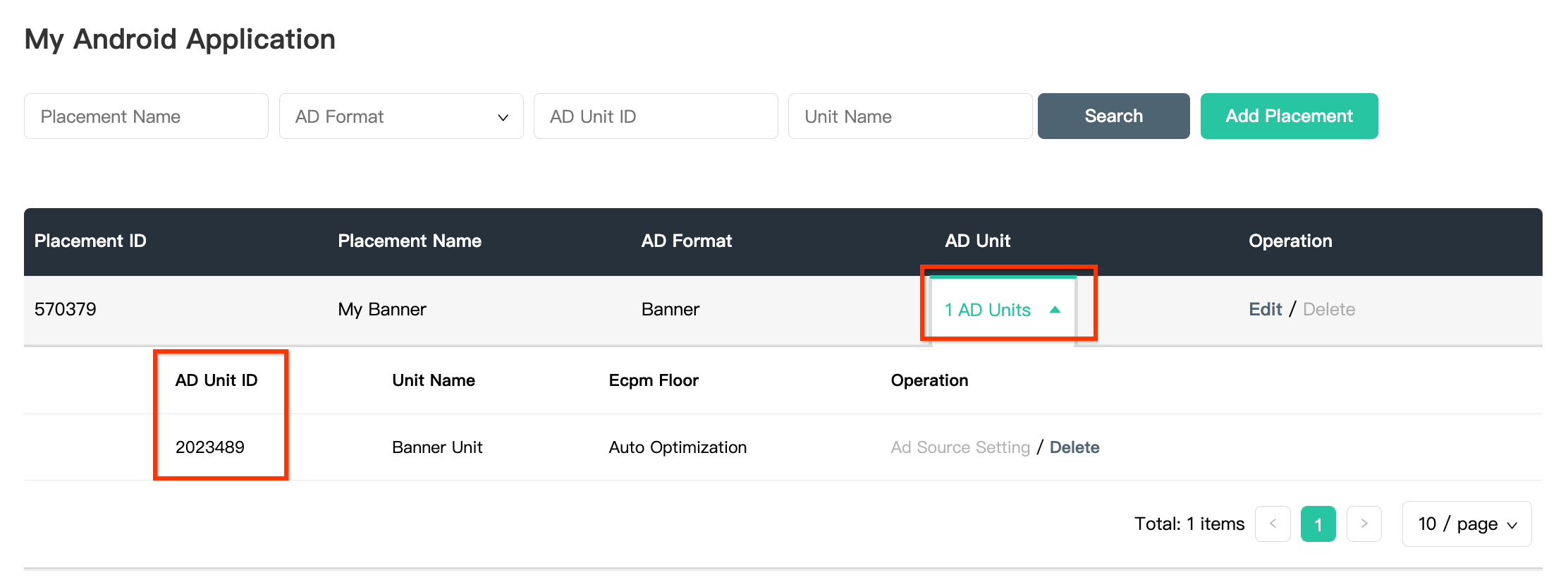 Depois de criar a posição do anúncio, anote o ID da posição.