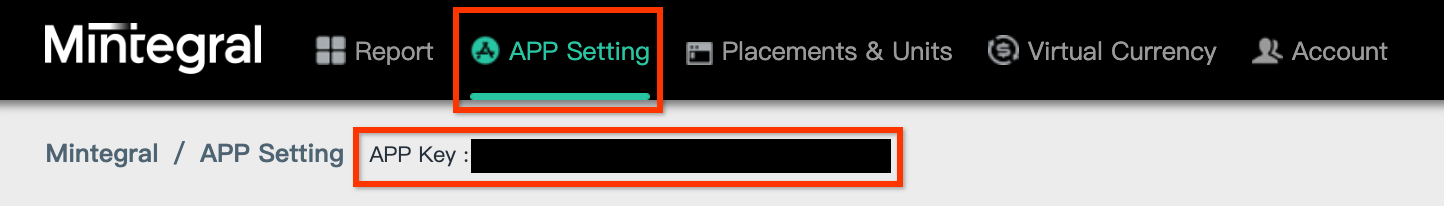 AdMob reklam birimi kimliğinizi ayarlamak için Mintegral Reporting API anahtarınız gerekir. Hesap > API Araçları'na gidin. Skey ve Secret değerlerinizi not edin.