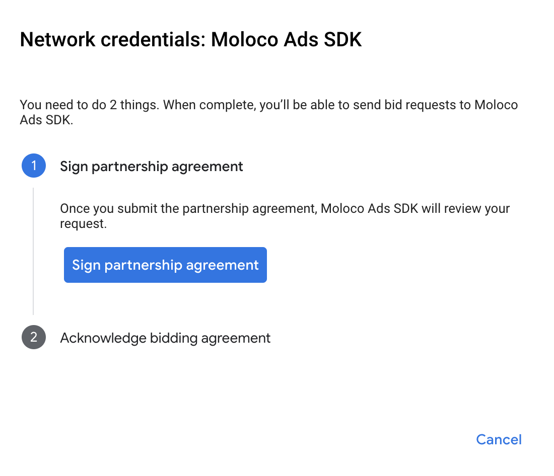 İş ortaklığı sözleşmesi nasıl imzalanır? düğmesini tıklayın ve Moloco Ads SDK ile teklifli sistem iş ortaklığını ayarlayın.