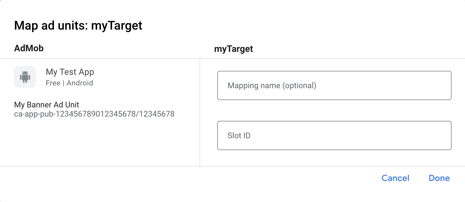 Anda perlu menambahkan myTarget ke konfigurasi mediasi untuk unit iklan Anda.