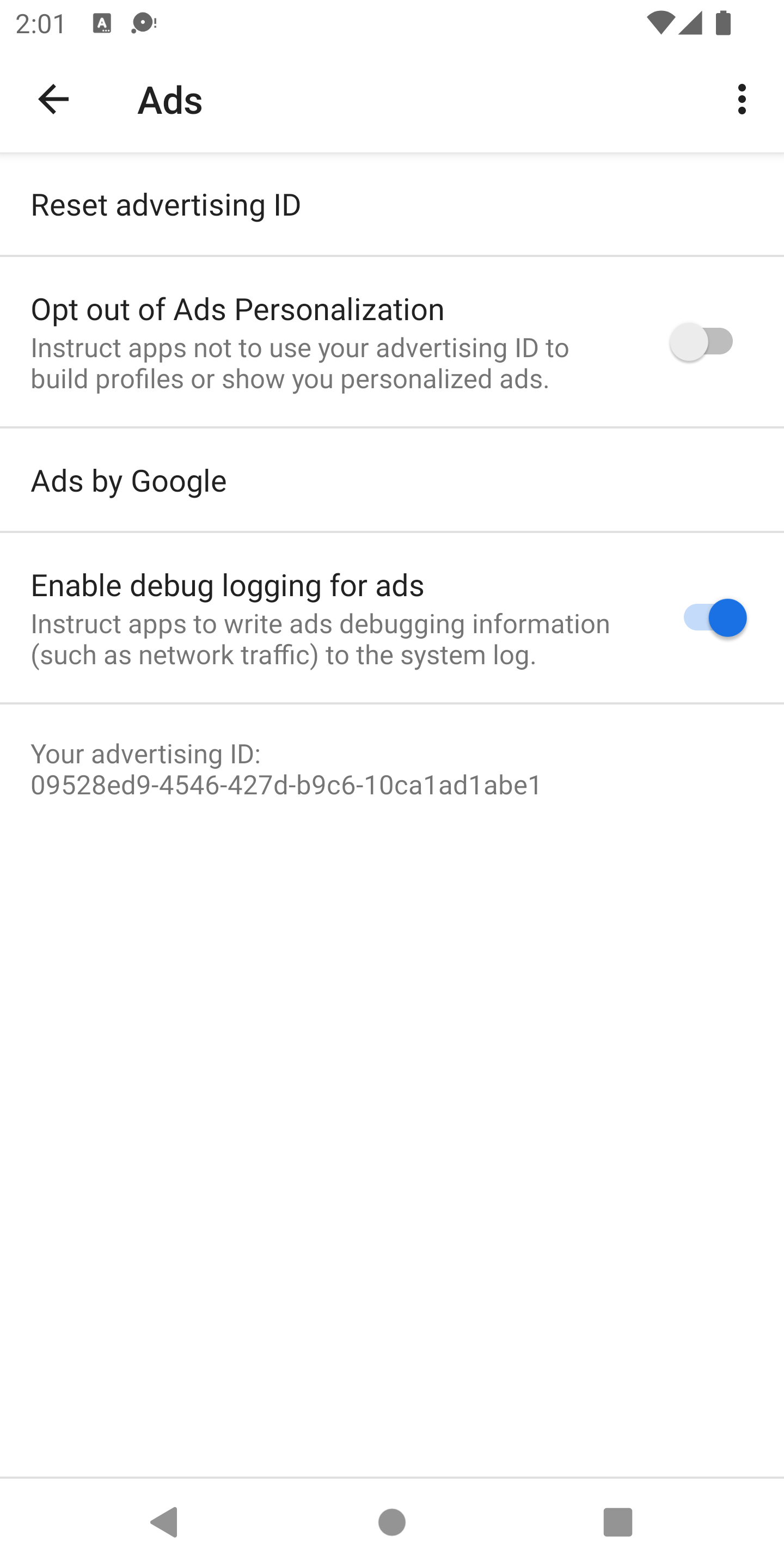 Per abilitare la tracciatura della rete, attiva le opzioni per sviluppatori per il tuo dispositivo. Dopodiché, avvia l'app Impostazioni Google e seleziona l'opzione Annunci:
