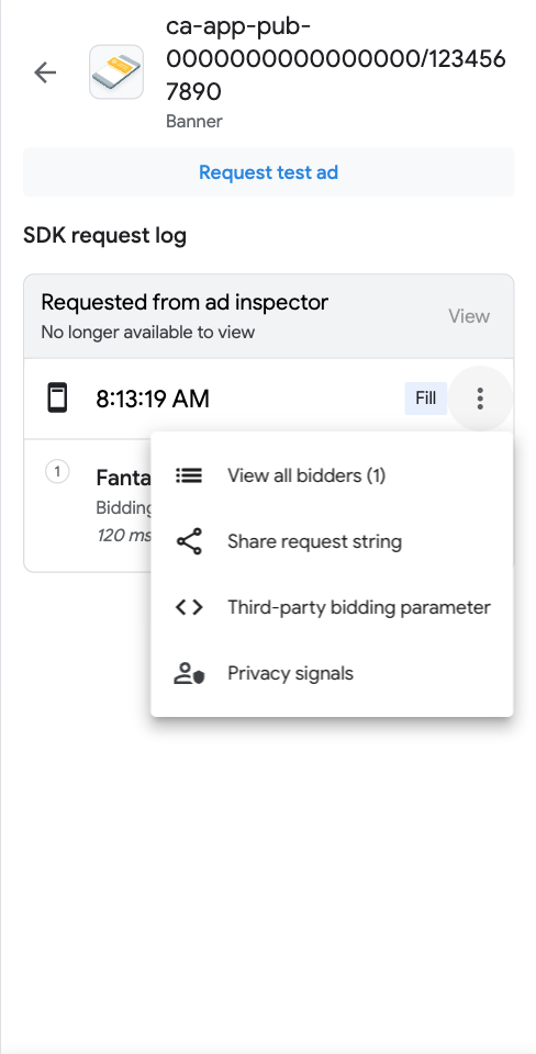 - Tocca la richiesta che preferisci in Log delle richieste SDK.