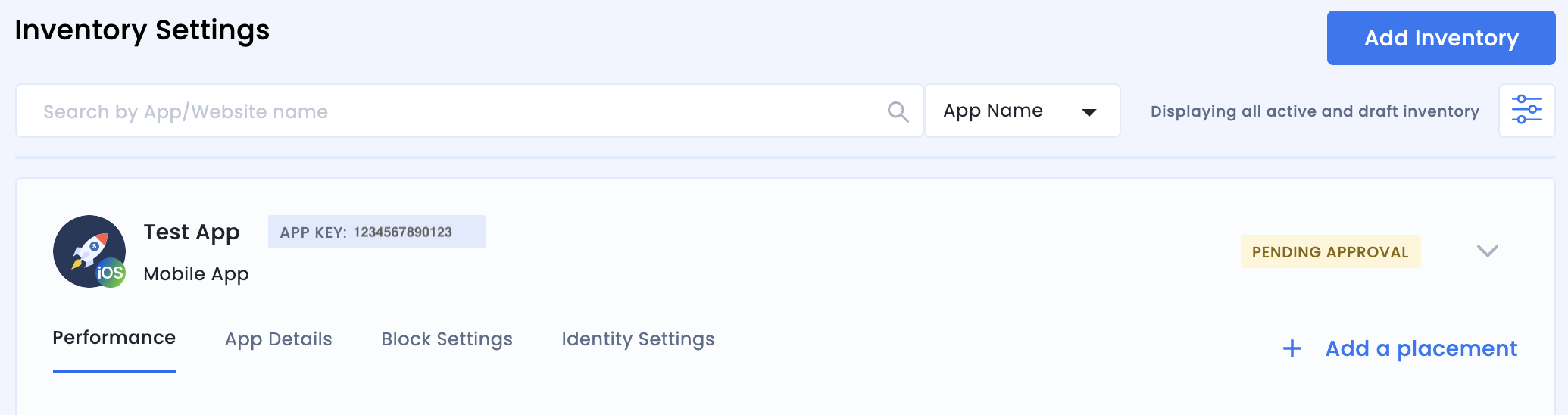 Per aggiungere la tua app alla dashboard InMobi, fai clic su Inventario > Impostazioni inventario.