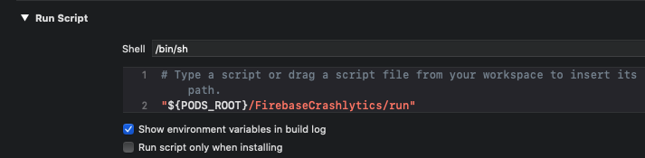 In Xcode, apri Build Settings (Impostazioni di compilazione), fai clic sulla scheda Build Phases (Fasi di compilazione). Aggiungi lo script di esecuzione di Fabric:
