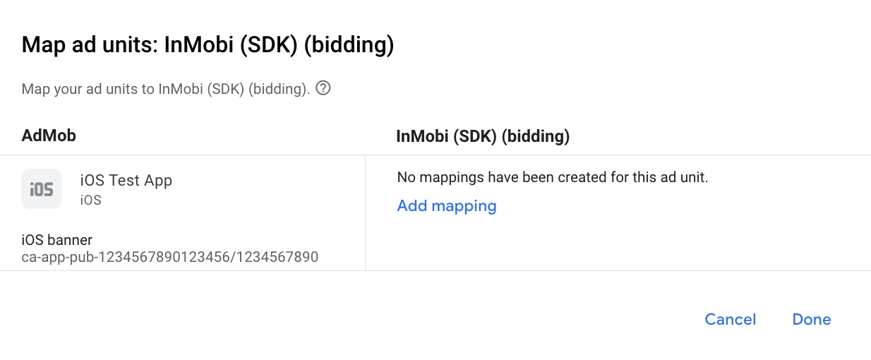 In dieser Anleitung erfahren Sie, wie Sie mit Google Mobile Ads SDK Anzeigen von InMobi über die AdMob-Vermittlung laden und ausliefern. Dabei werden sowohl Vermittlungsabfolge- als auch Gebotsintegrationen behandelt. Hier erfahren Sie, wie Sie InMobi der Vermittlungskonfiguration eines Anzeigenblocks hinzufügen und das InMobi SDK und den Adapter in eine iOS-App einbinden.