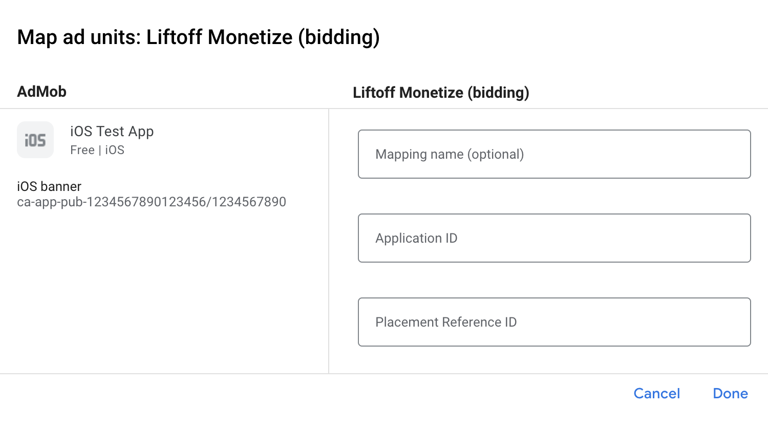 本指南說明如何使用 Google Mobile Ads SDK,透過 AdMob 中介服務載入及顯示 Liftoff Monetize 廣告,包括出價和刊登序列整合作業。內容涵蓋如何將 Liftoff Monetize 新增至廣告單元的中介服務設定,以及如何將 Vungle SDK 和轉接程式整合至 iOS 應用程式。
