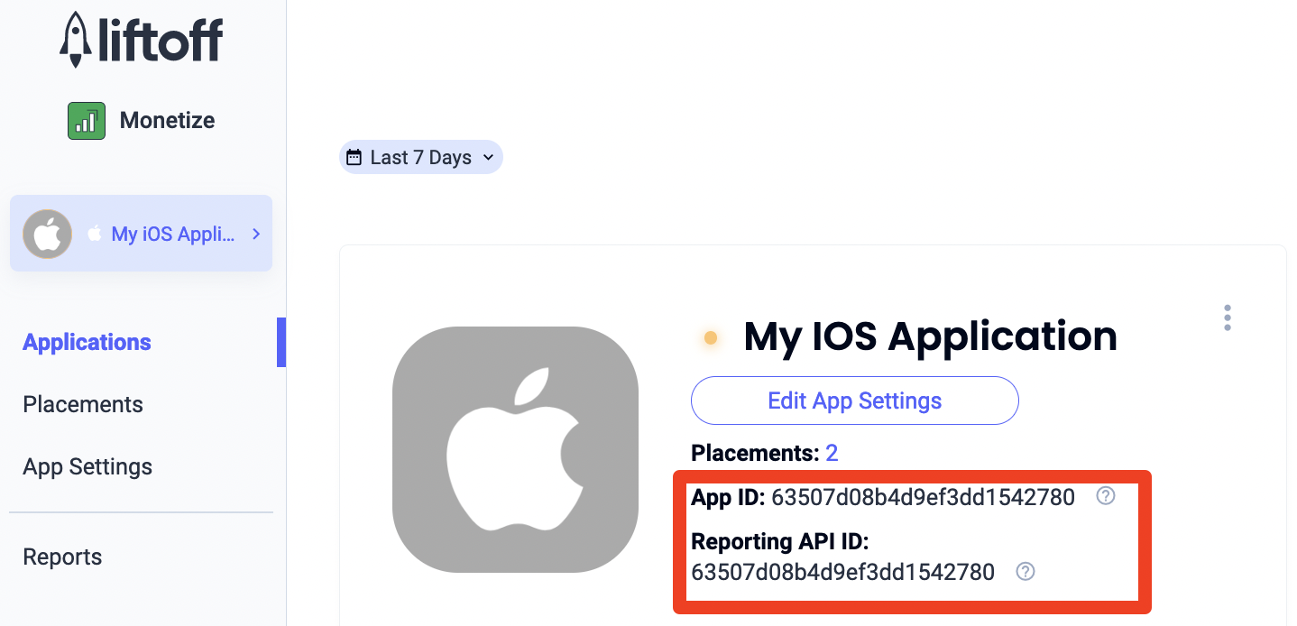 アプリを作成したら、Liftoff Monetize アプリケーション ダッシュボードでアプリを選択します。