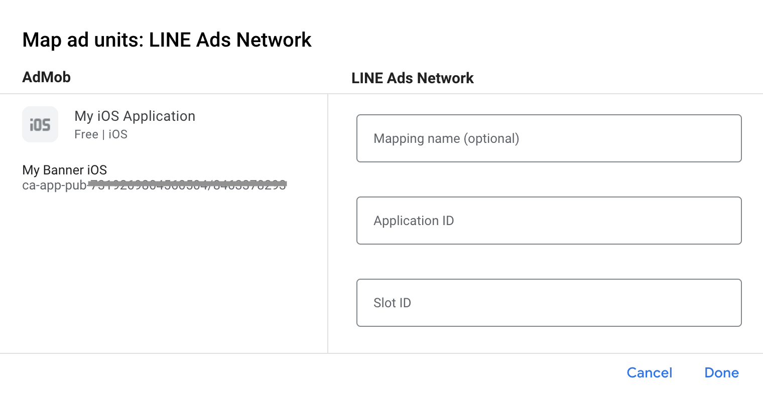 Etapa 2: configurar a demanda da LINE Ads Network na interface da AdMob