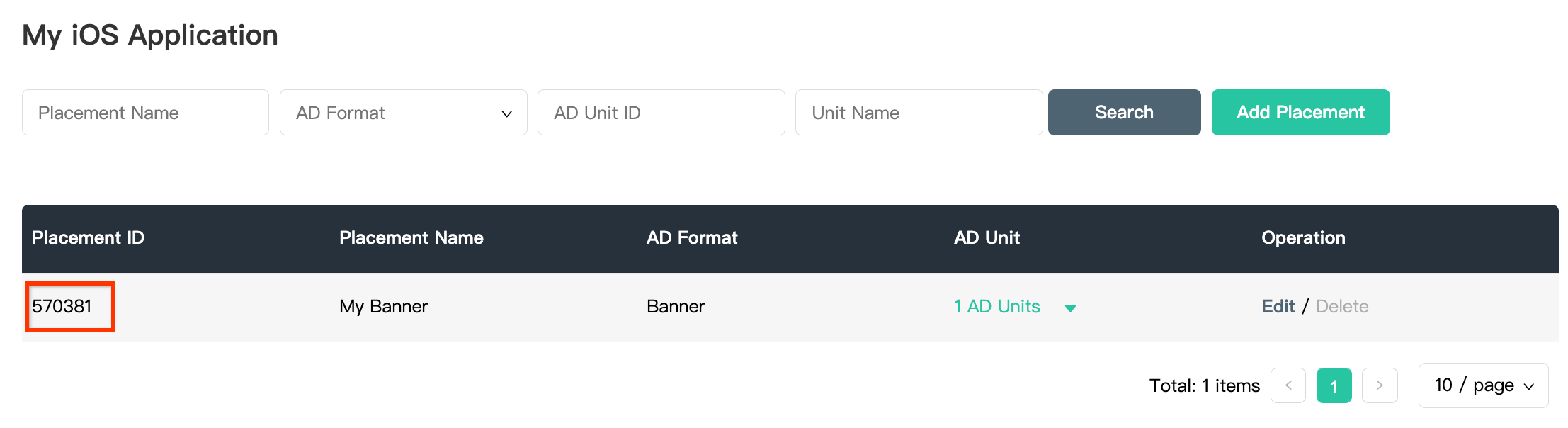 Setelah penempatan iklan dibuat, catat ID Penempatan.