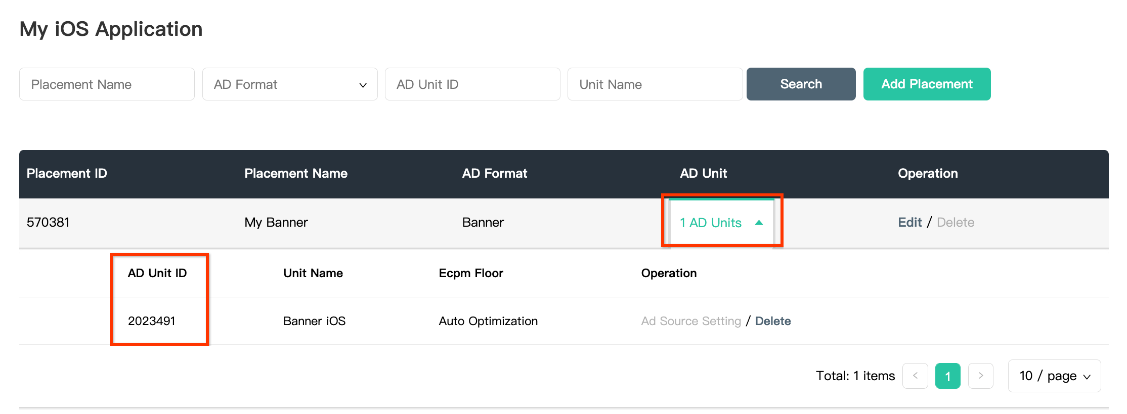 Cliquez sur le menu déroulant 1 bloc d'annonces et notez l'ID du bloc d'annonces.