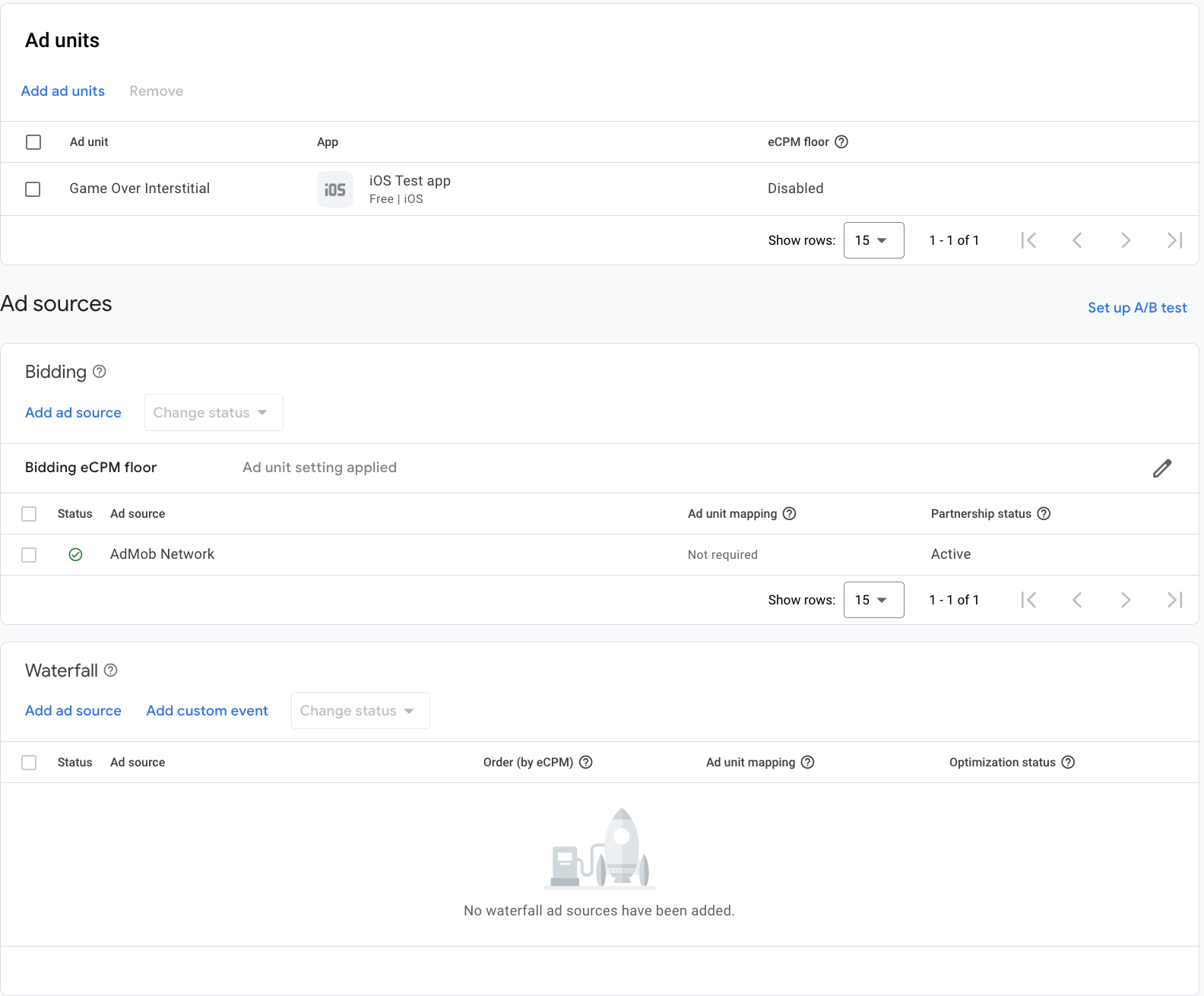Ora dovresti vedere la scheda delle unità pubblicitarie compilata con le unità pubblicitarie che hai selezionato: