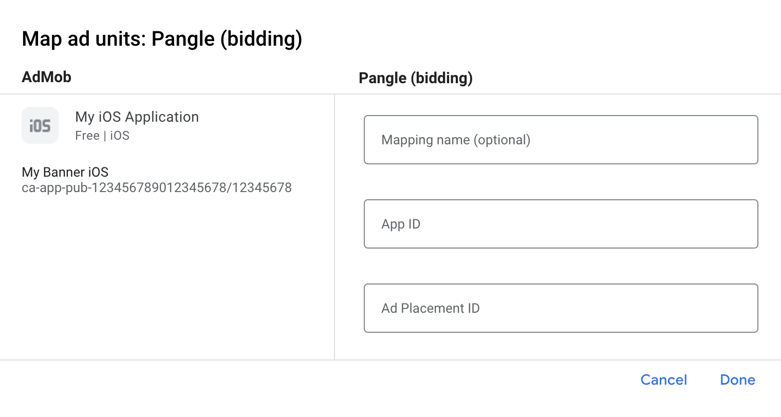 如需更多詳細資料及各方法可使用的值,請參閱 Pangle 的 iOS 整合指南。