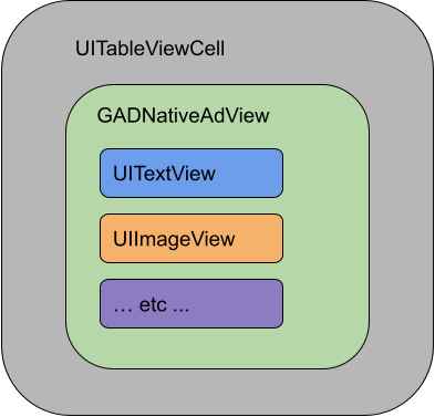 Se, ad esempio, visualizzassi un annuncio in un UITableView, la gerarchia di oggetti View per una delle celle potrebbe essere simile alla seguente: