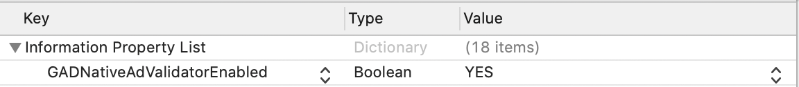 <key>GADNativeAdValidatorEnabled</key>