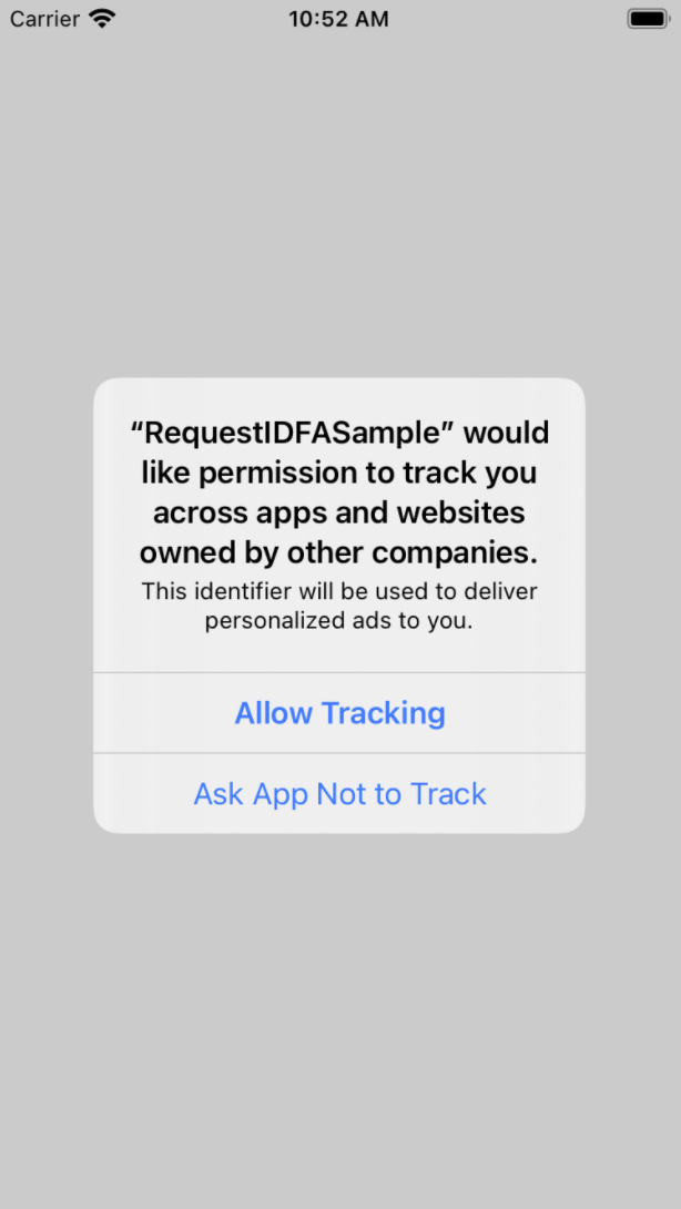 L'app mostra quindi un messaggio IDFA prima dell'avviso ATT.