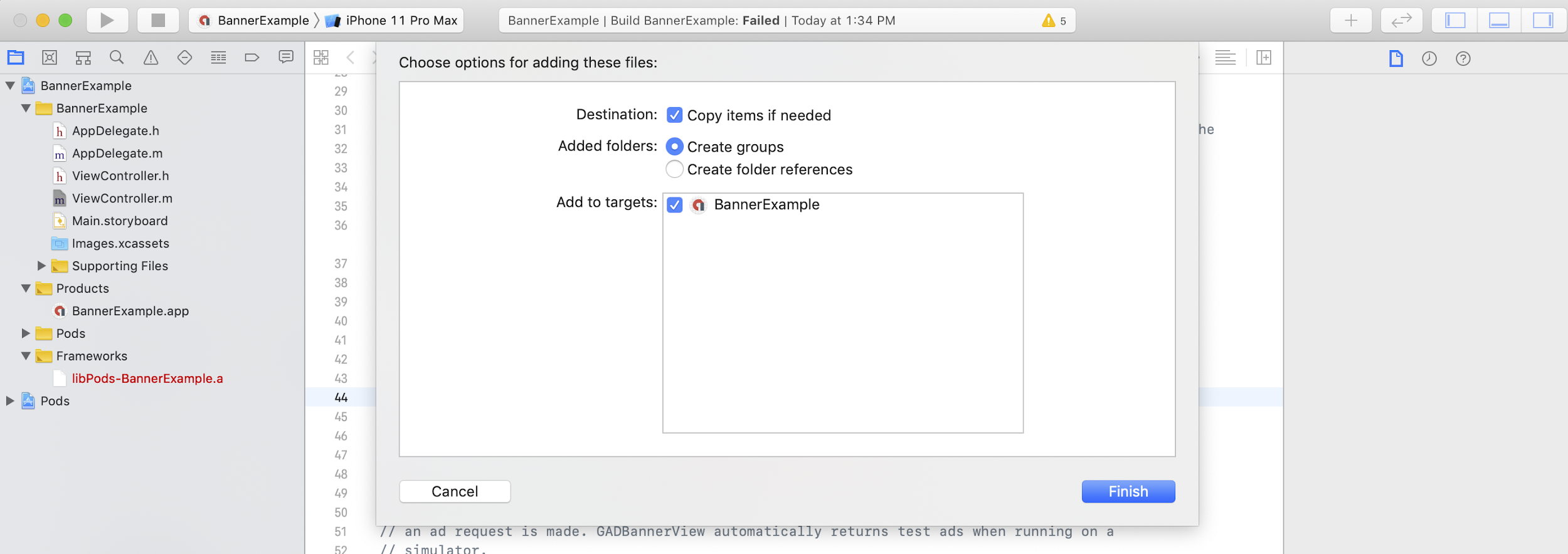 Następnie przeciągnij framework do projektu w Xcode i upewnij się, że zaznaczona jest opcja Copy items if needed (Skopiuj elementy w razie potrzeby).