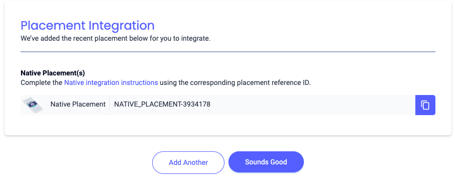 Native(네이티브)를 선택하고 Placement Name(게재위치 이름)을 입력한 후 양식의 나머지 부분을 작성합니다. [입찰만 해당] 수익 창출에서 인앱 입찰 스위치를 사용 설정됨으로 전환합니다. 페이지 하단의 계속 버튼을 클릭하여 게재위치를 만듭니다.