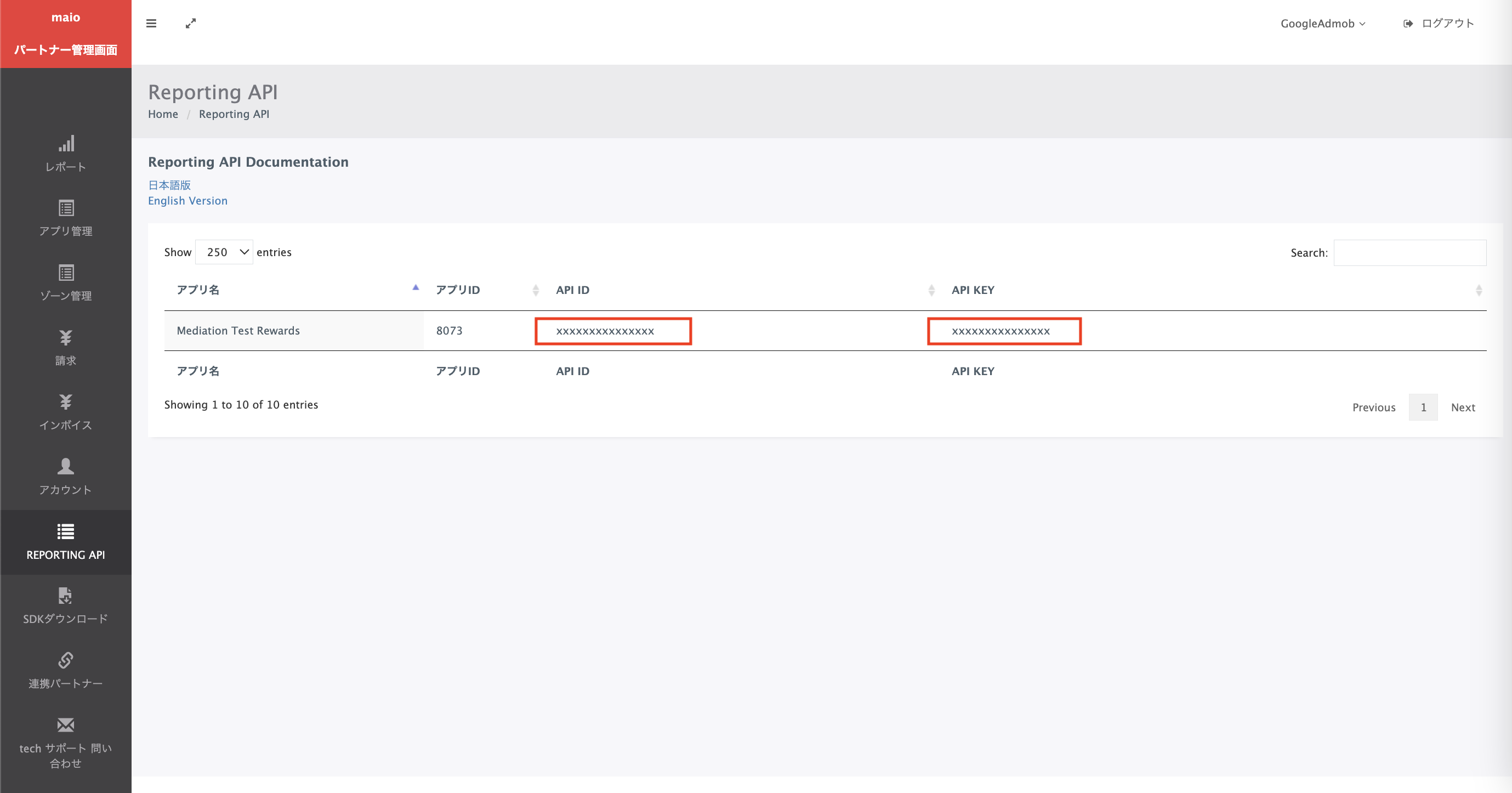 | 特典 | jp.maio.sdk.android.mediation.admob.adapter.Rewarded |