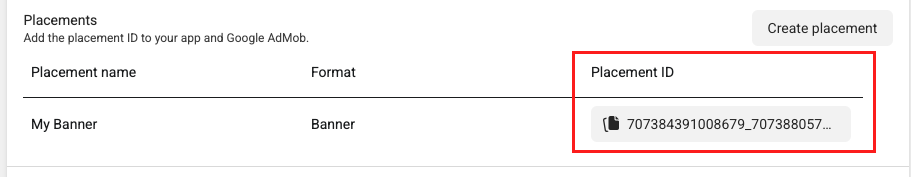 Placement ID(게재위치 ID)를 기록해 둡니다.