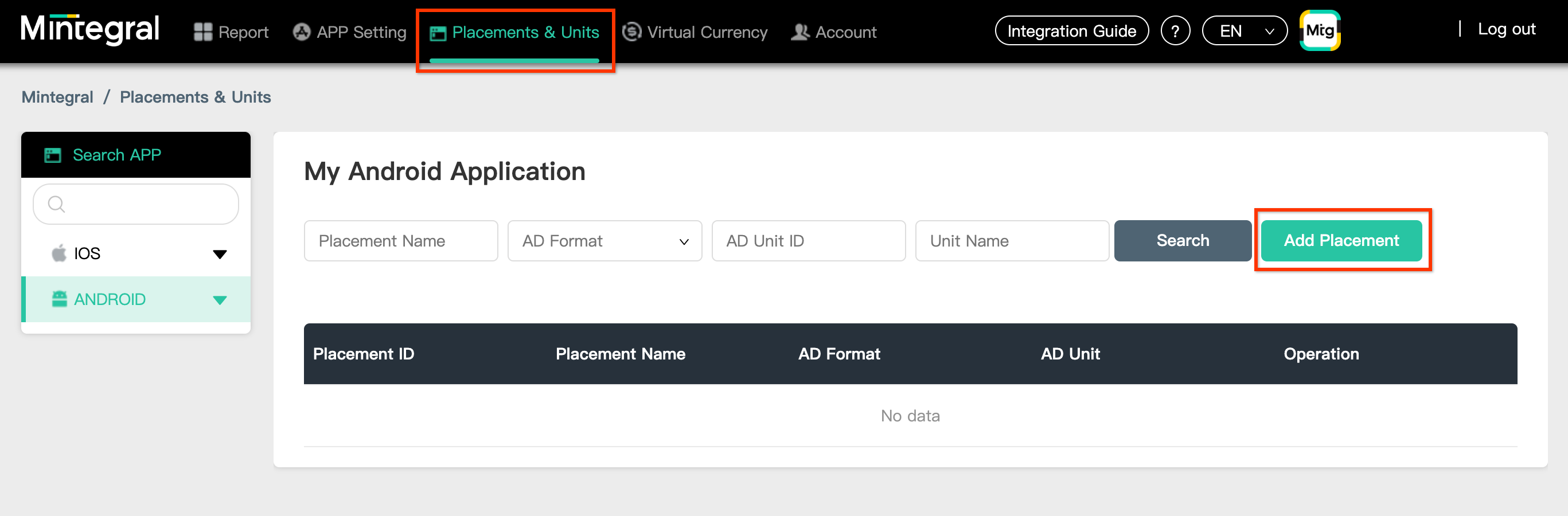 Per ottenere annunci di test Mintegral per banner, interstitial, annunci con premio e nativi, Mintegral consiglia di utilizzare le chiavi app, gli ID app, gli ID posizionamento e gli ID unità pubblicitaria forniti nella pagina ID test Mintegral.