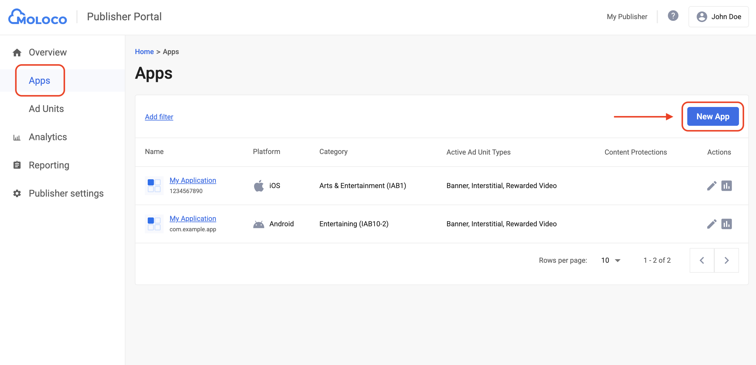 انتقِل إلى علامة التبويب نظرة عامة > التطبيقات، ثم انقر على الزر إضافة تطبيق لإنشاء تطبيق جديد.