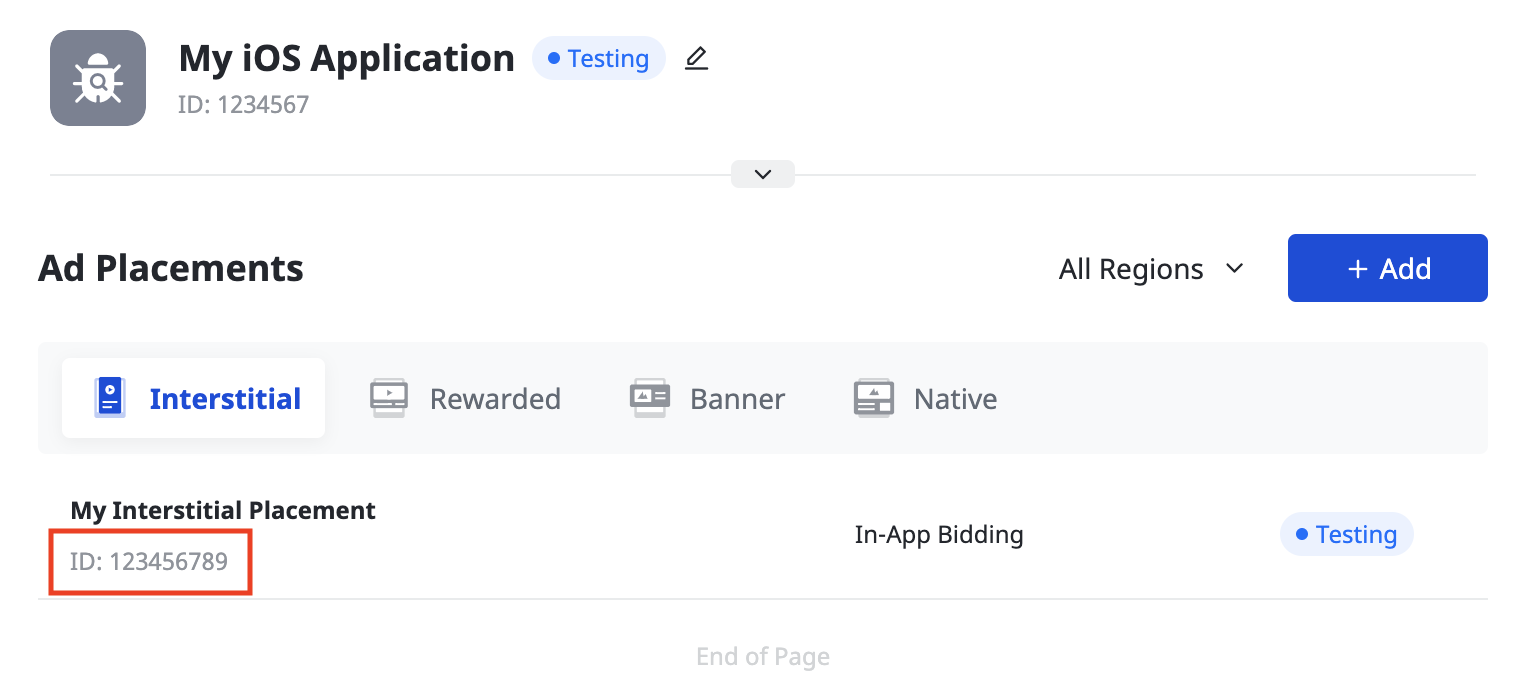 광고 게재위치가 생성되면 Ad Placement ID(광고 게재위치 ID)를 기록해 둡니다.