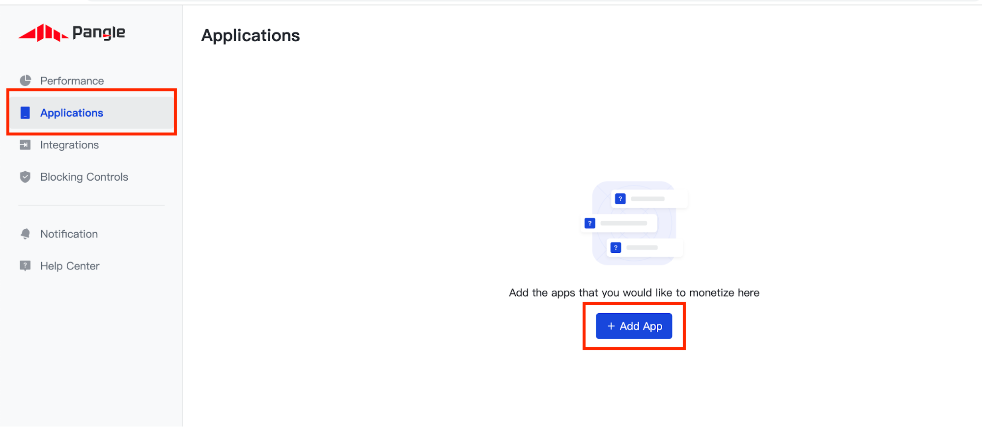 Navega a la pestaña Applications y haz clic en el botón Add App.