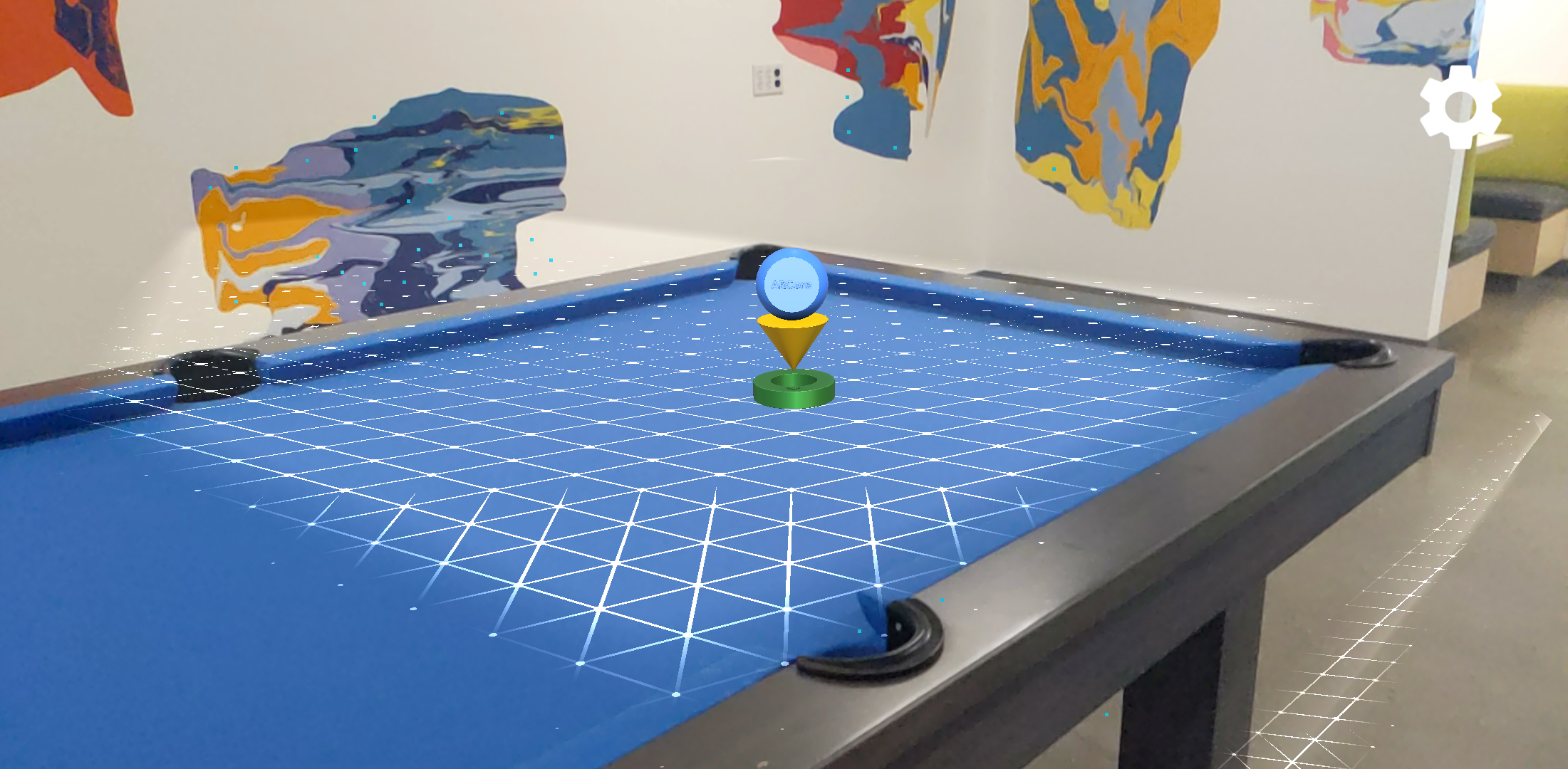 Pada Gambar 4, objek kini tampak terhalang oleh meja biliar saat perangkat bergerak di sekitar tampilan.