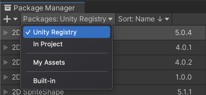 Packages পাশে, Unity Registry নির্বাচন করুন।