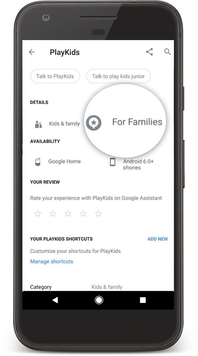 Program AFF (AFF) Asystenta Google jest przeznaczony dla deweloperów, którzy wykazali się umiejętnością tworzenia treści dla całej rodziny. Deweloperzy, którzy chcą wziąć udział w programie AFF, muszą potwierdzić, że mają w Google Play aplikację zatwierdzoną przez nauczycieli, chyba że zawarli z Google umowę partnerską dotyczącą akcji dla całej rodziny.