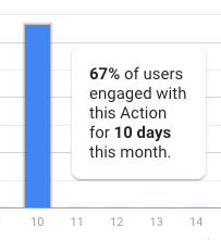 Each number on the x-axis represents the number of days in a month users engaged with your Action. For example, the 4 column represents the percentage of users that engaged with your Action 4 days in the month. If you hover your cursor over a column, a pop-up appears with this information, as shown in the following screenshot: