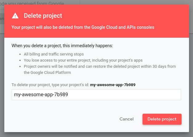 - Geben Sie die Projekt-ID ein, die über dem Textfeld angezeigt wird.
