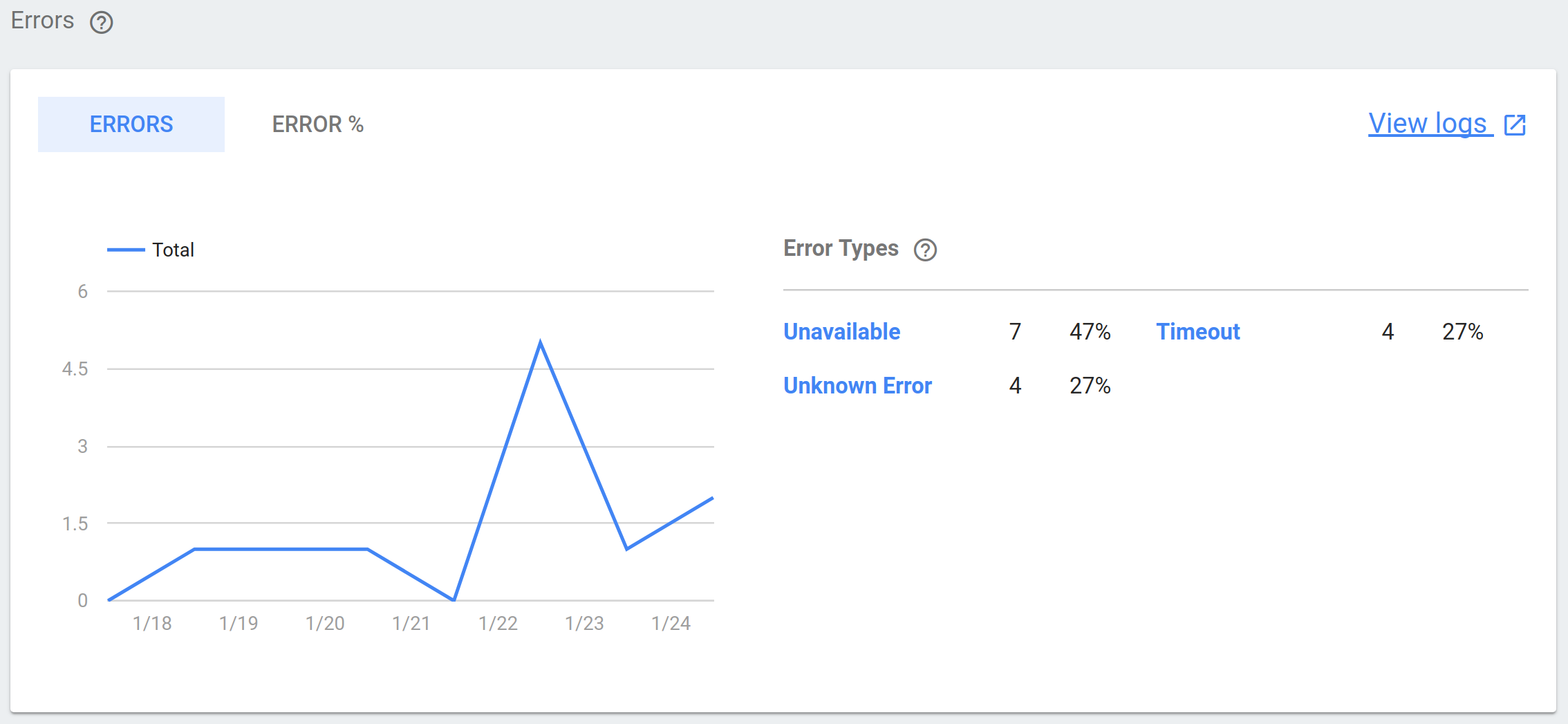 3. Di bagian Error, pilih link Lihat Log di pojok kanan atas: