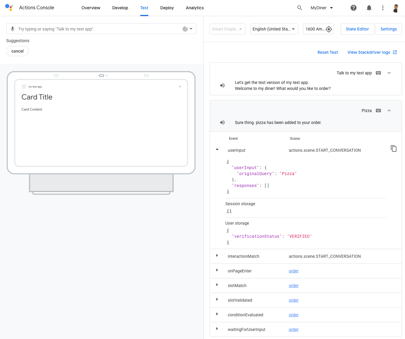 প্রধান নেভিগেশন এলাকায়, আপনার অ্যাকশন পরীক্ষা করার জন্য সিমুলেটরে যেতে টেস্টে ক্লিক করুন।