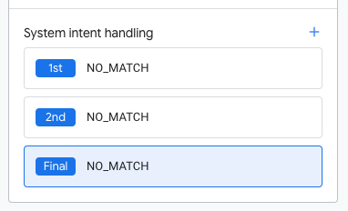 アシスタントの NLU が NO_MATCH または NO_INPUT システム インテントと一致すると、それぞれのデフォルト プロンプトまたはカスタマイズされたプロンプトがユーザーに送信されます。NO_MATCH または NO_INPUT が 3 回一致すると、最後のメッセージがユーザーに送信され、アシスタントはアクションとの会話を終了します。