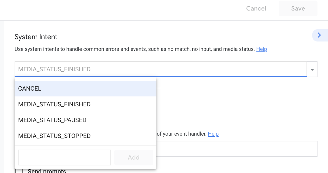 Dialogflow में कुछ इवेंट (fallback, media, और welcome) का इस्तेमाल करने वाले इंटेंट के लिए, माइग्रेशन टूल उस इवेंट के लिए मिलता-जुलता सिस्टम इंटेंट बनाता है. अगर एक जैसे Dialogflow इंटेंट में ट्रेनिंग वाले वाक्यांश हैं, तो उन ही ट्रेनिंग वाले वाक्यांशों के साथ एक और इंटेंट बनाया जाएगा.