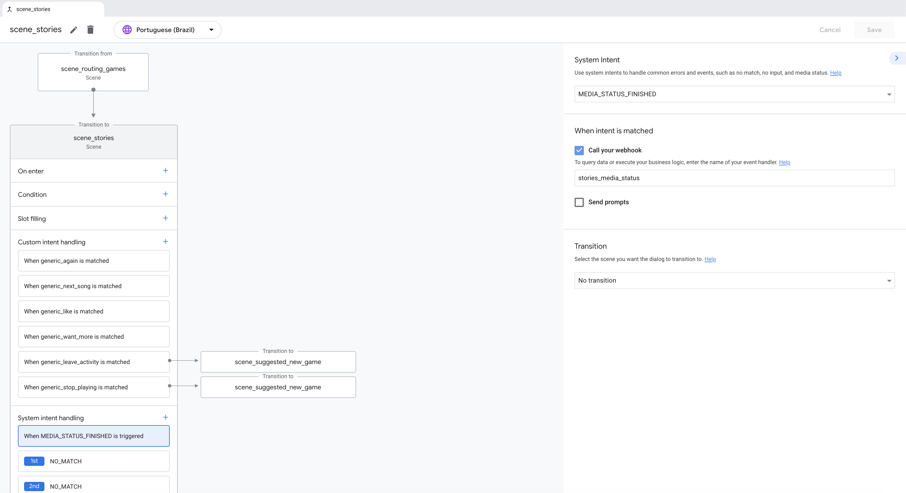 Dialogflow プロジェクトでフォールバック インテントを使用している場合は、システム インテントを追加することが重要です。よく使用される Actions Builder のシステム インテントの例には、NO_MATCH や NO_INPUT などがあります。これらのシステム インテントについて詳しくは、システム インテントをご覧ください。