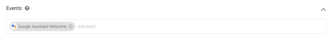 3. Geben Sie im Abschnitt Events (Ereignisse) des Intents GOOGLE_ASSISTANT_WELCOME ein.